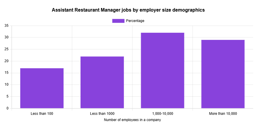 - 17% of Assistant Restaurant Managers work for companies that have less than 100 employees