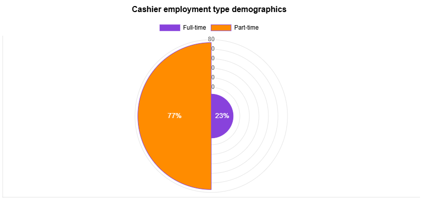 Due to the flexible nature of the job, 77% of Cashiers work part-time.