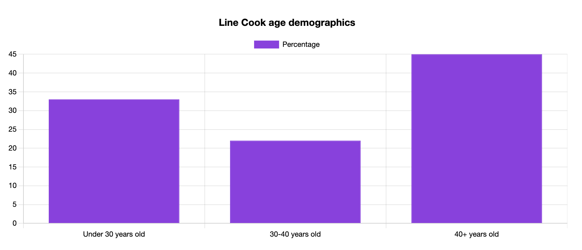 Most Line Cooks are older than 40 years (45%). This is similar to other kitchen roles, like Sous Chef demographics and statistics.
