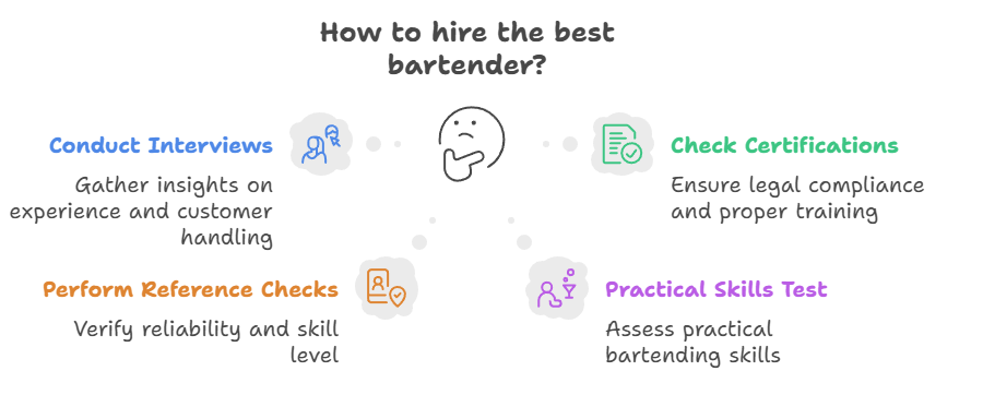 Consider practical evaluations by asking shortlisted candidates to demonstrate cocktail-making skills, wine knowledge, or craft beer expertise.