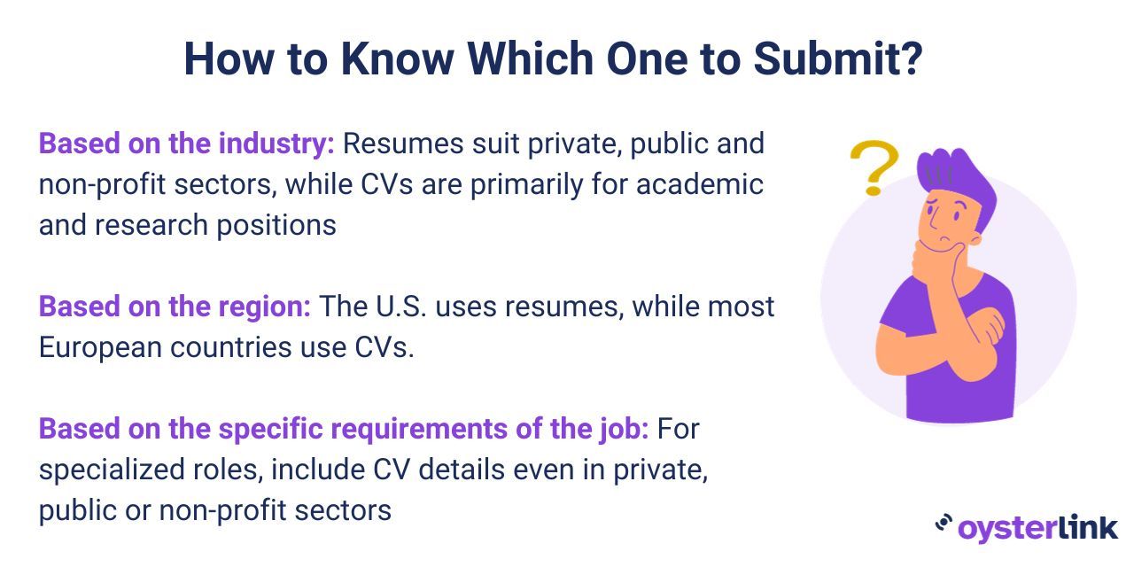 - By industry: For roles in the non-profit, private, or public sectors, a resume is typically requested. In contrast, academic and medical positions often require a CV.
