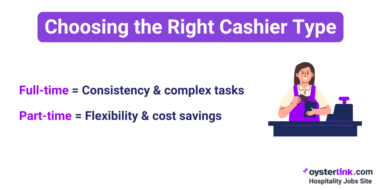 For instance, in a luxury retail setting, you may prefer a full-time Cashier who can consistently provide personalized services, such as styling advice or detailed product explanations.