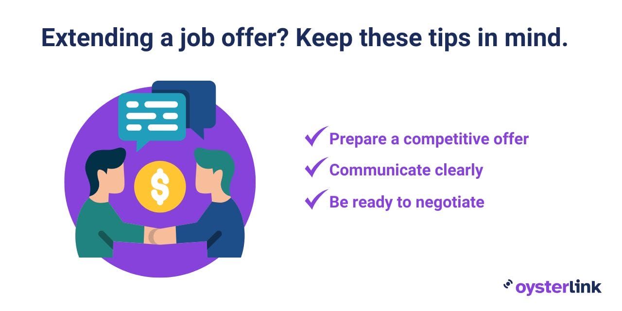 - Be prepared to answer any questions the candidate may have about the offer or the position.